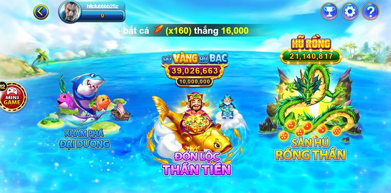 Hiện tại, ngư trường săn cá hitclub có 3 sảnh để anh em khám phá. Bao gồm: khám phá đại dương, Đón lộc thần tiên, Săn hũ rồng thần.