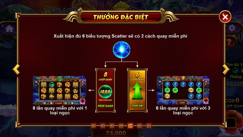 Biểu tượng Wild sẽ được tính dồn vào bát xu, tăng thêm cơ hội nổ hũ. Riêng biểu tượng scatter sẽ có thêm cơ chế kích hoạt hũ thưởng jackpot. Mặt khác, chỉ cần quay ra đủ 6 scatter thì hệ thống sẽ tặng người chơi 6 hoặc 8 lượt quay free.