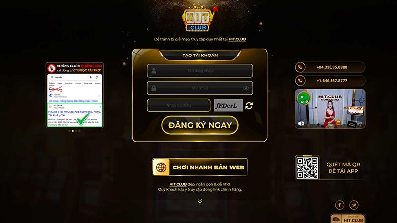 Truy cập trang chủ hitclub qua link tại website
